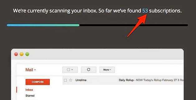 2.Your inbox will be scanned for subscriptions. Wait until this is complete.