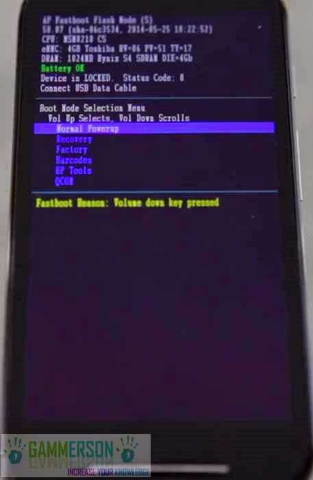 8. Now tap volume down button on your Moto E to highlight the recovery option in the boot loader And Press volume Up button to select it.