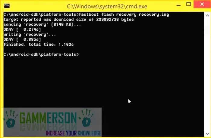 C:UsersSachinDesktopMfastboot>fastboot flash recovery.img