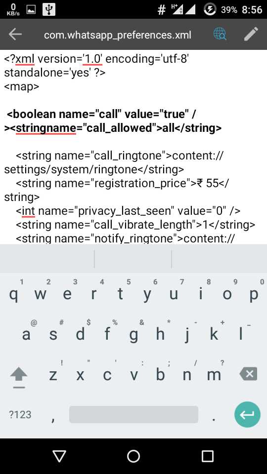 8.Then open com.whatsapp_preferences.xml as Es note Editor