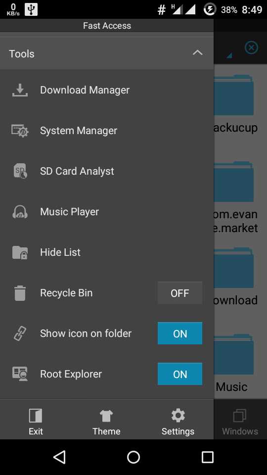 3.Now open menu from top left corner and switch on Root explorer.As shown in image.