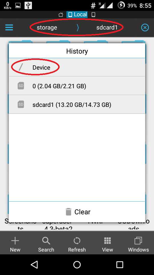 4.Now open you device memory by tapping on circled areas then select device.shown in image.
