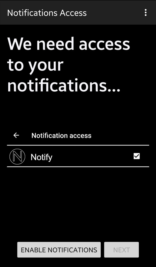 4.Once you’re ready ,run the app, launch it and enable Notification access.
