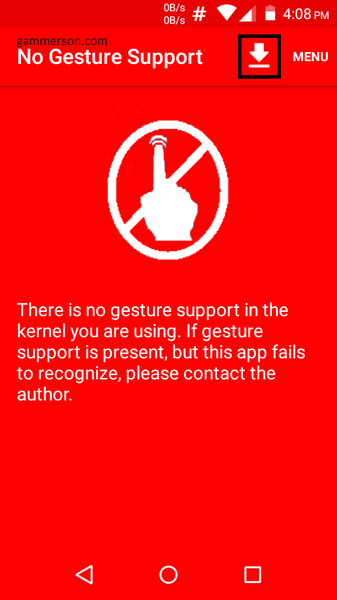 3.Click on Continue now it will give you error that No Gesture Support in kernel you are using  So just click on Download Icon on Top right corner to Download Zapdos kernel 1.6.