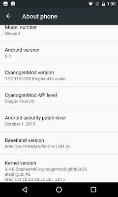 Thanks to XDA dev stephanmc for the this unofficial Cyanogenmod 13 rom for Nexus 4 code name mako.We already shared the AOSP android Marshmallow 6.0 Rom for Nexus 4 in our Previous post.You can check that also.