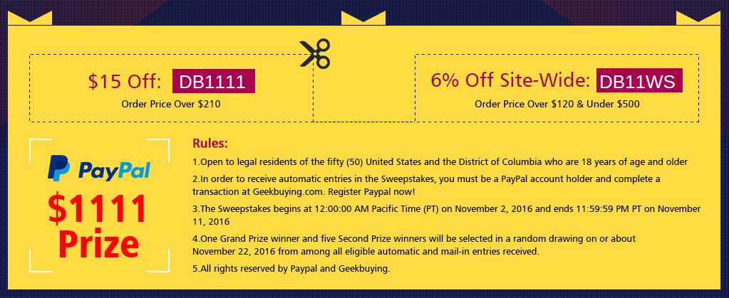 Lightning Deals on Geekbuying with Huge Discount Till 11 Nov: Christmas is coming soon, and you might not start the Christmas shopping yet then its the right time to shop. Because Geekbuying is here with awesome deals on electronic gadgets and other items this November till 11.11 and buy any product and get a chance to win $1,111 PayPal money.