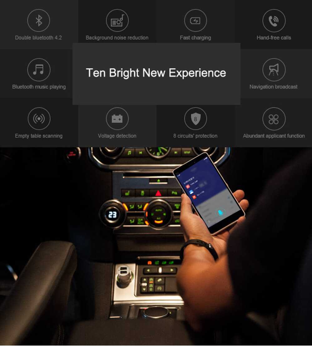 Hand-free calls,music playing,navigation broadcast,car charger,battery monitor 5 in 1