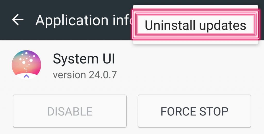 - You will get a pop up window with a warning “All updates to this Android system app will be uninstalled“. Confirm it by pressing “UNINSTALL“.