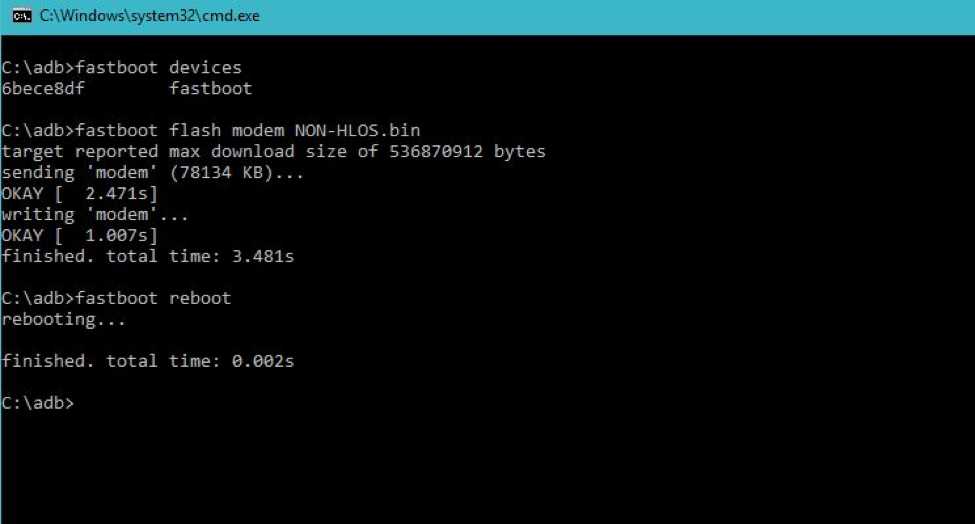 - Now execute the following command to fix the network problem on your Xiaomi phone fastboot flash modem NON-HLOS.bin