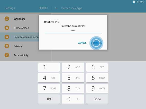 - If you have previously set up a different type of lock, you will be required to enter your credentials. For this example, we have to enter the PIN previously registered.