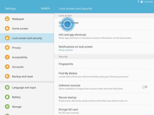 - From the Home screen, touch Apps> Settings > Lock screen and security