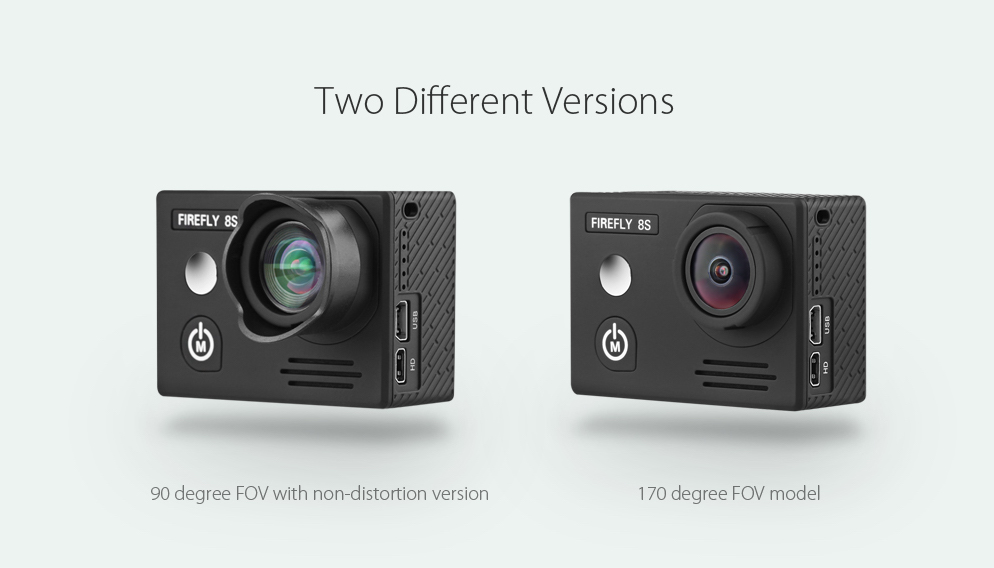 | PACKAGE CONTENTS | Package Contents: 1 x FIREFLY 8S 4K WiFi Sport HD DV Camera, 1 x Waterproof Case, 1 x J-shaped Mount, 1 x Long Connector + Screw, 2 x Short Connector + Screw, 1 x Bike Handlebar Seatpost Pole Mount, 1 x 360 Degree Rotation Adapter, 2 x Mount, 2 x Adhesive, 1 x Metal Cable Tie, 4 x Plastic Cable Tie, 1 x Cleaning Cloth, 1 x Clip, 1 x Clip Case, 1 x AV Cable, 1 x English / Chinese Manual |